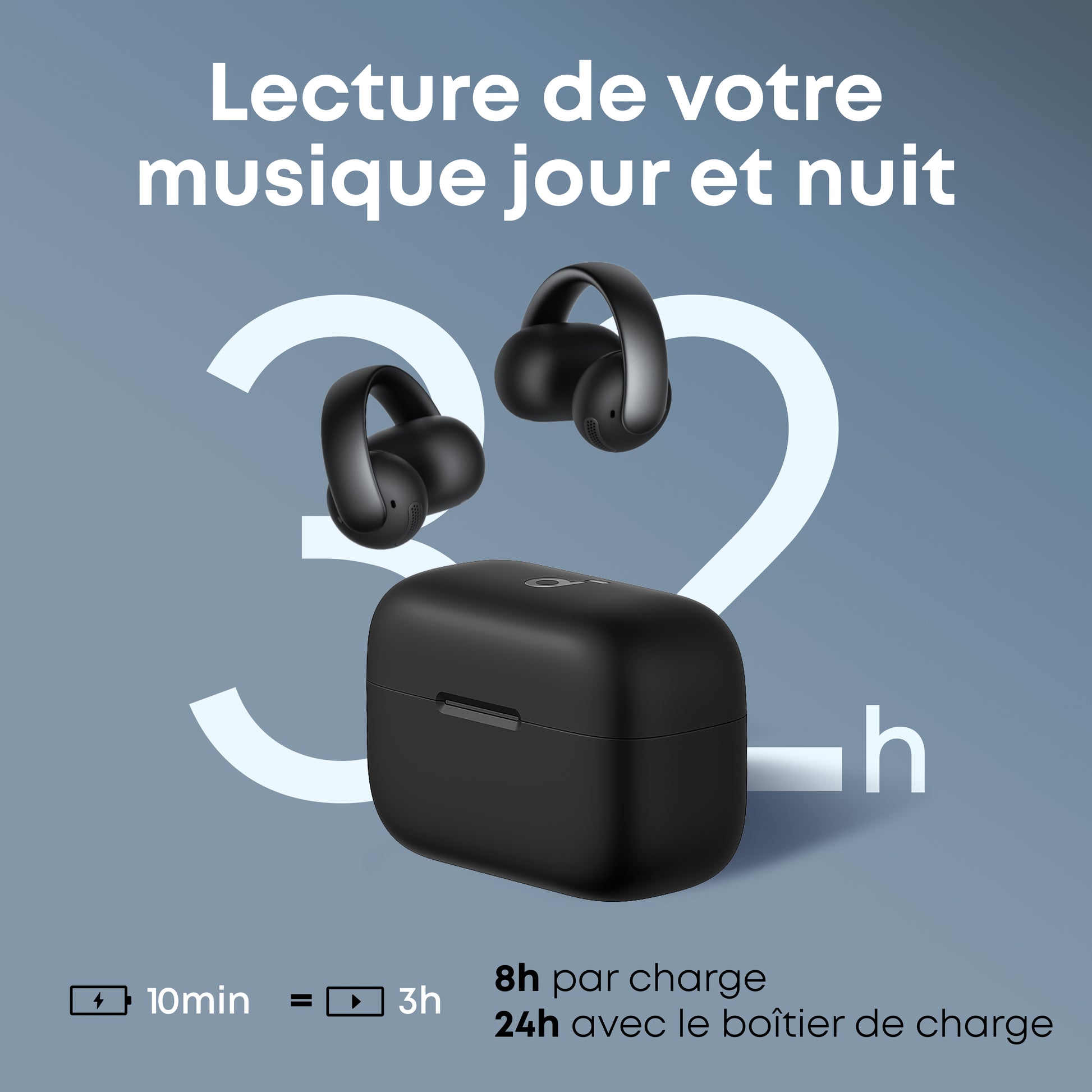 Confort adaptatif : Conçus pour soulager l'inconfort intra-auriculaire, les écouteurs à clip soundcore AeroClip diffusent votre musique sans exercer de pression et vous accompagnent dans toutes vos aventures en plein air. Plébiscités dans l'article « Quels sont les meilleurs écouteurs ouverts à choisir en 2025 ? » de Frandroid pour leur confort exceptionnel, ils s'imposent comme un choix idéal pour une écoute prolongée en toute légèreté.