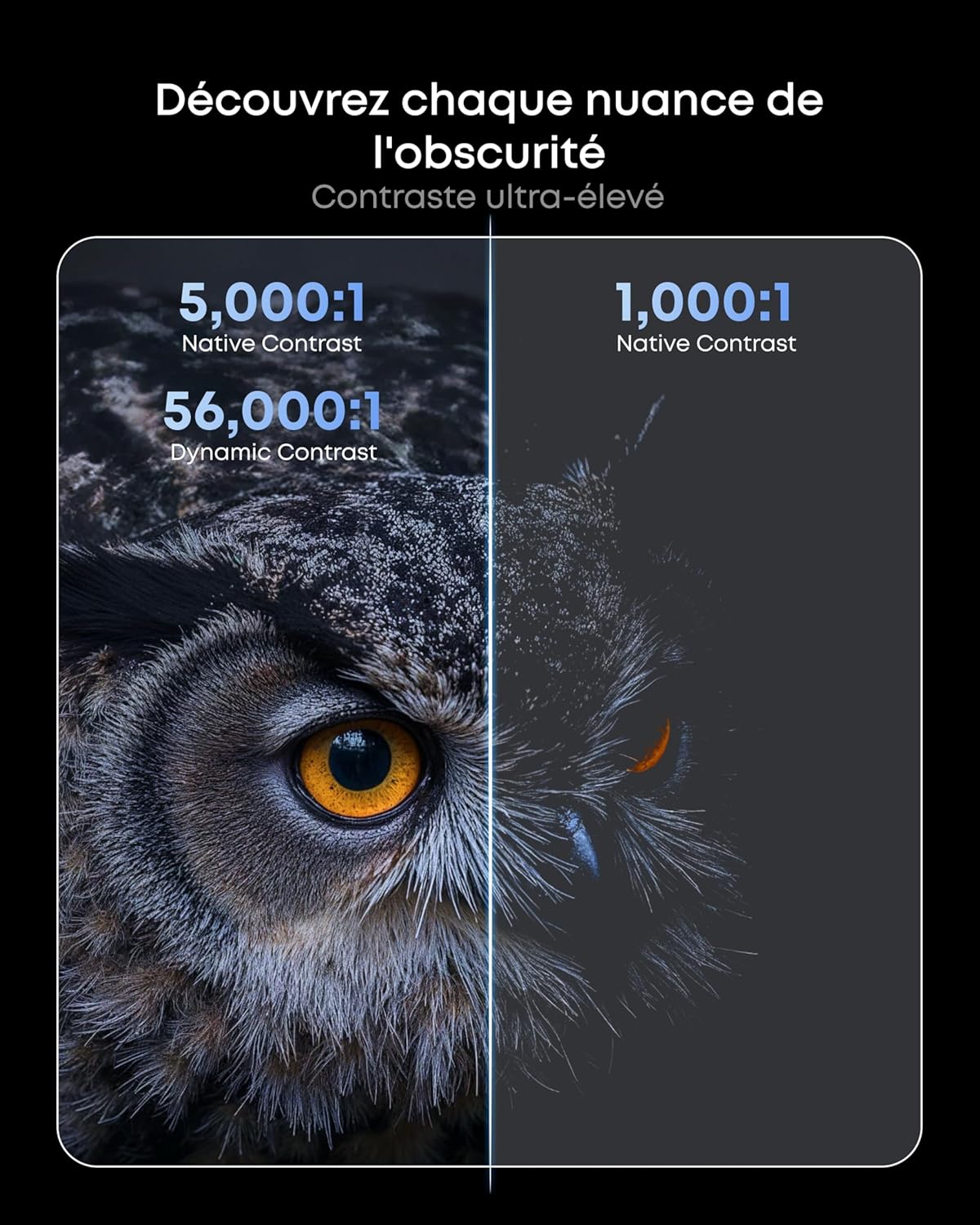 - Découvrez chaque nuance de l'obscurité grâce au contracter ultraélevé : L'iris à 6 lames affiche un contraste natif de 5 000:1, porté à 56 000:1 grâce à la technologie NebulaMaster.